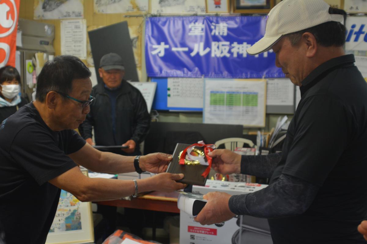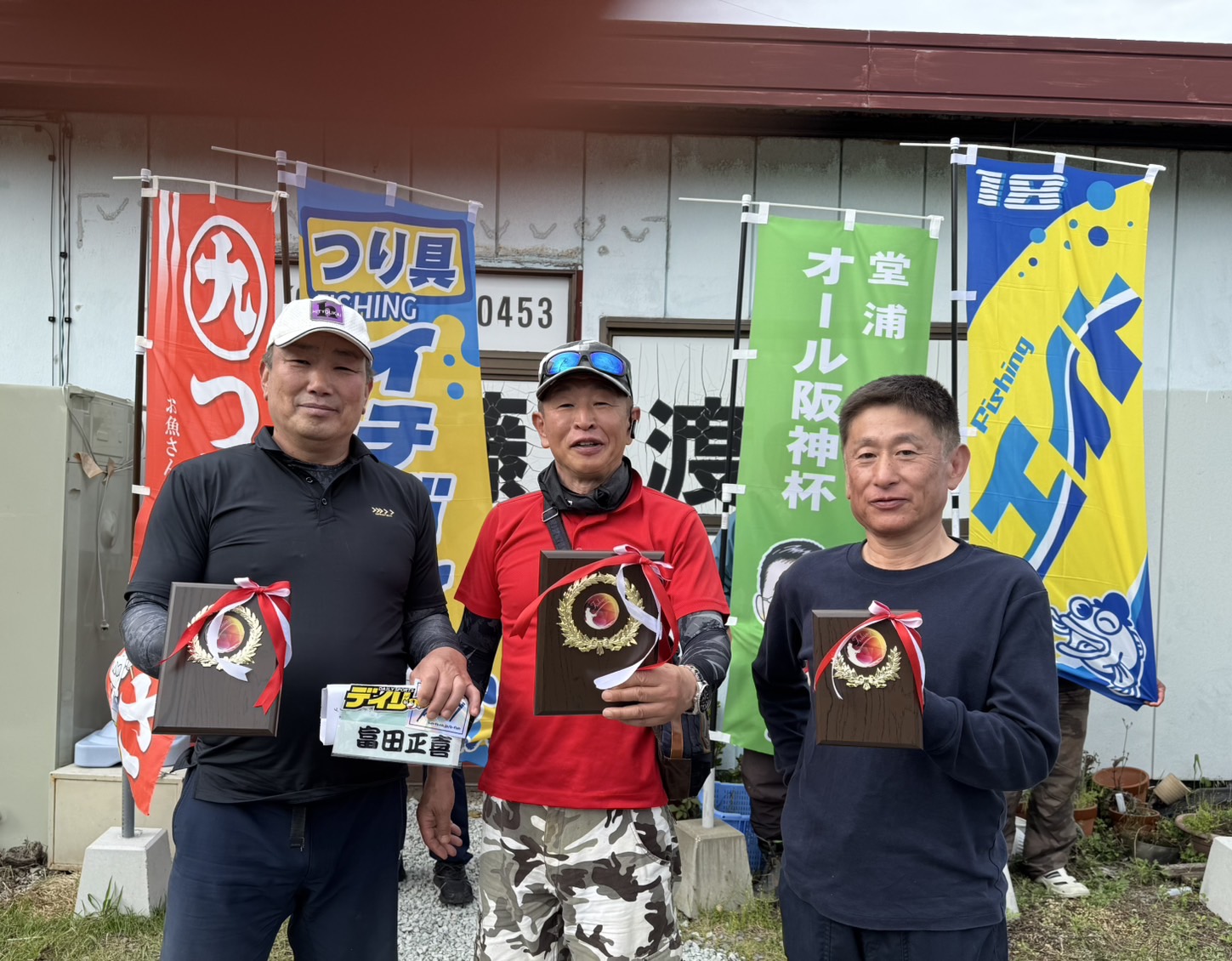 準優勝は富田さん(飛潮会)で2尾の合計寸で73㎝(37.5㎝、35.5㎝)となり、前田さんには惜しくも3cm届かずでした。順位には反映されませんが富田さんは総匹数でも6匹釣られています。